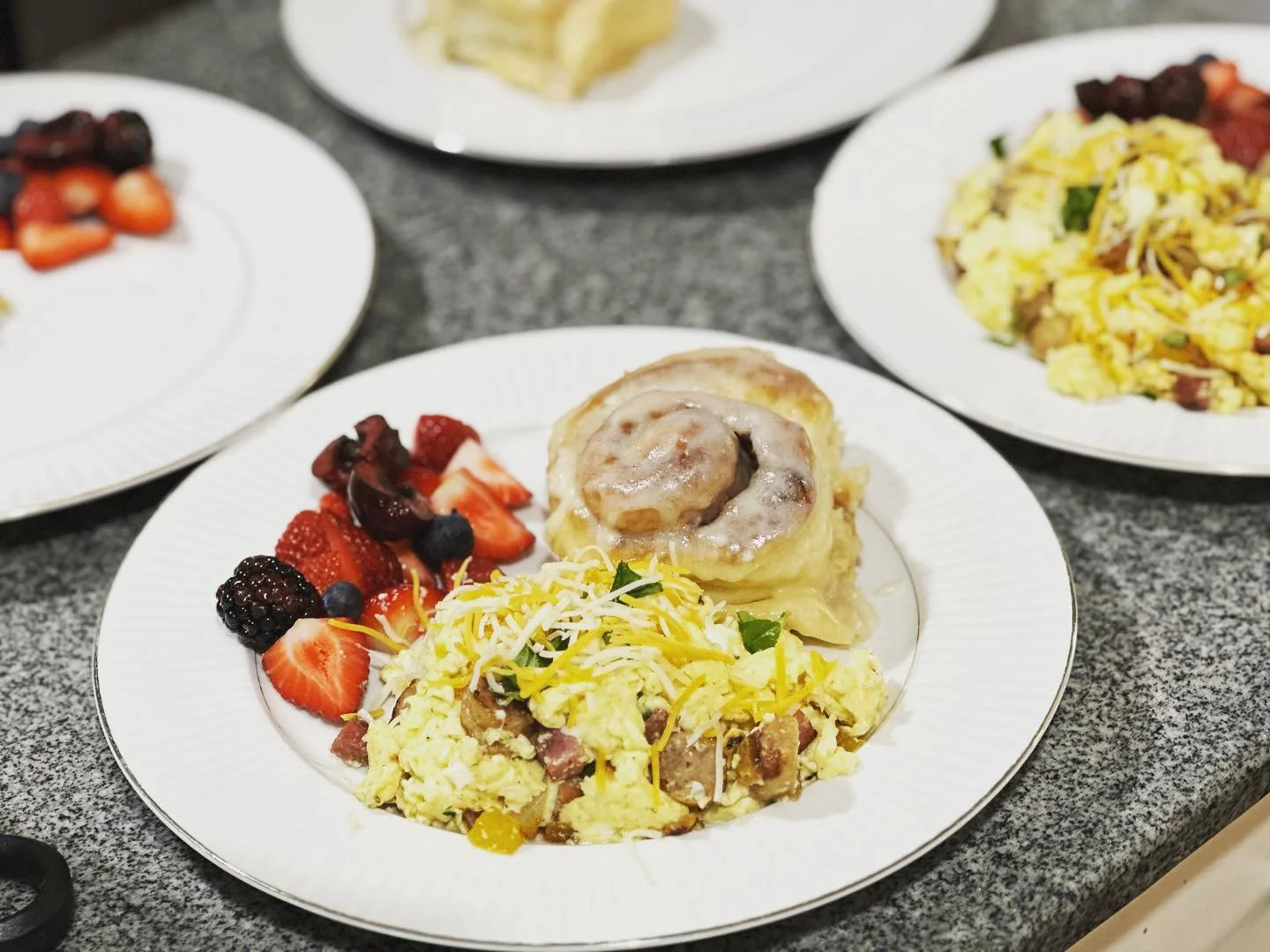 Our menu does change quite often but we try to always have an egg dish, a pastry and fruit. All of our egg dishes are naturally gluten free. We do try to accommodate food allergies as best we can. When making your reservation be sure to let us know if you have a food allergy or dietary restriction so that we may plan best for it.